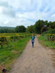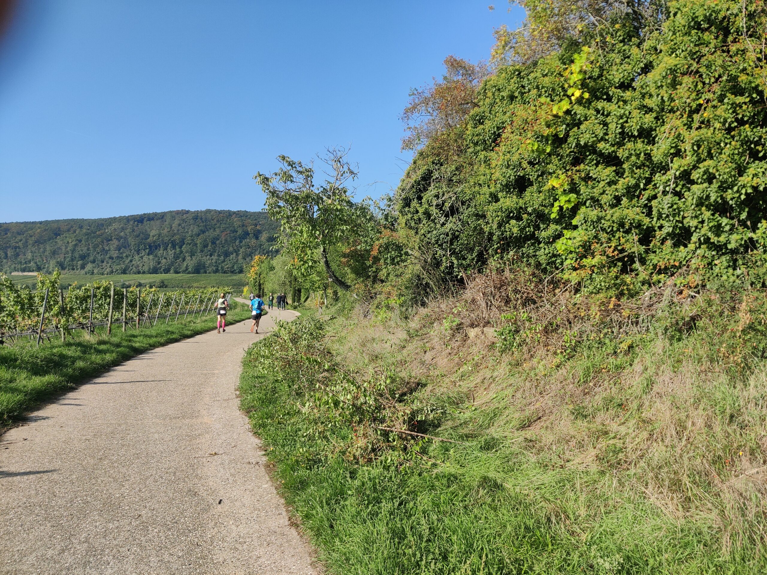 Bad Dürkheim kenne ich von verschiedenen Läufen, sei es der Weinstraßen Marathon (für nächstes Jahr bin ich bereits gemeldet) oder auch als Ziel für die Rheintalquerung (die muss ich für 2026 noch organisieren). Am Marktplatz läuft ein Passant ein Stück neben mir her und fragt nach, was dass denn für eine Veranstaltung sei, bei der wir da gerade mitmachen. Er ist sichtlich beeindruckt von den Distanzen – ich glaube für die allermeisten außerhalb der eingefleischten Ultra-Läufer-Szene sind Distanzen jenseits der zwanzig Kilometer eigentlich nicht vorstellbar. Einen ganz kleinen Teil Weinstraßen-Marathon-Strecke streifen wir dann auch noch: Die Unterführung unter der Talstraße nutzen beide Läufe, nur in unterschiedliche Richtungen.