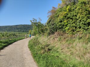 Noch ein paar Zacken weiter und wir sind am Ortsrand von Bockenheim – das Haus der deutschen Weinstraße ist deutlich näher gerückt, aber es liegt noch etwas mehr als ein Kilometer vor uns. Etwas angetrieben vom Blick auf die Uhr und dem Wissen, dass es jetzt gleich vorbei ist, mache ich doch noch ein klein wenig Tempo. Das hätte ich mir sparen können, vor lauter Tempo verpeile ich den geplanten Weg am Haus entlang – wird sind aber scheints nicht die ersten am heutigen Tag – man gibt uns gleich Zeichen dass wir falsch sind.