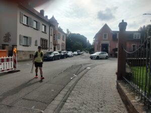 Was mir auch auffällt und was sich beim Verlassen des Waldes in Battenberg bestätigt: Die Sonne ist weg, sie hat sich hinter einer Wolkendecke versteckt. Dementsprechend ist es auch nun deutlich frischer, ich überlege zwischenzeitlich doch schon die Jacke aus dem Rucksack zu packen, lasse es aber vorläufig sein. Der Weg führt nun wieder einmal durch den Ort, unterhalb der Burg treffen wir auf einen Abschnitt, den ich schon von einer Trainingseinheit kenne. Von daher bin ich nun im Vorteil gegenüber Stefan der mich noch immer begleitet – teilweise sind wir einige Meter auseinander, holen uns aber an verschiedenen Punkten immer wieder ein.