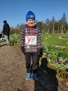 Eine Anreise im eigentlichen Sinne gibt es, bis an den Start ist es noch nicht einmal einem Kilometer Luftlinie von daheim. Wir sind zeitig da und aufgrund der Zeitumstellung auch noch etwas unausgeschlafen, aber das wird sich bald geben. Die Starts sind für uns in aufsteigender Reihenfolge, der Jüngste beginnt den Reigen. Nach 6:36 min ist er auch schon wieder im Ziel – die Strecke führt dabei einmal kurz durch den Schwetzinger Schlossgarten. Platz 64 gesamt, männlich Platz 42 und in der Altersklasse sogar Platz 22. Das kann sich sehen lassen.